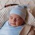 Our Snuggle Hunny Baby Blue knotted baby beanie is soft and snuggly and made with Certified Organic cotton so you know bub has only the best. For newborns to 6 months old.