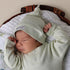 Our Snuggle Hunny Honeydew ribbed knotted baby beanie is soft and snuggly and made with Certified Organic cotton so you know bub has only the best. For newborns to 6 months old.