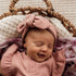 Our organic cotton Rose ribbed topknot matches beautifully with a range of dresses, growsuits and bodysuits. Made with GOTS Certified Organic Cotton CU 1182228.